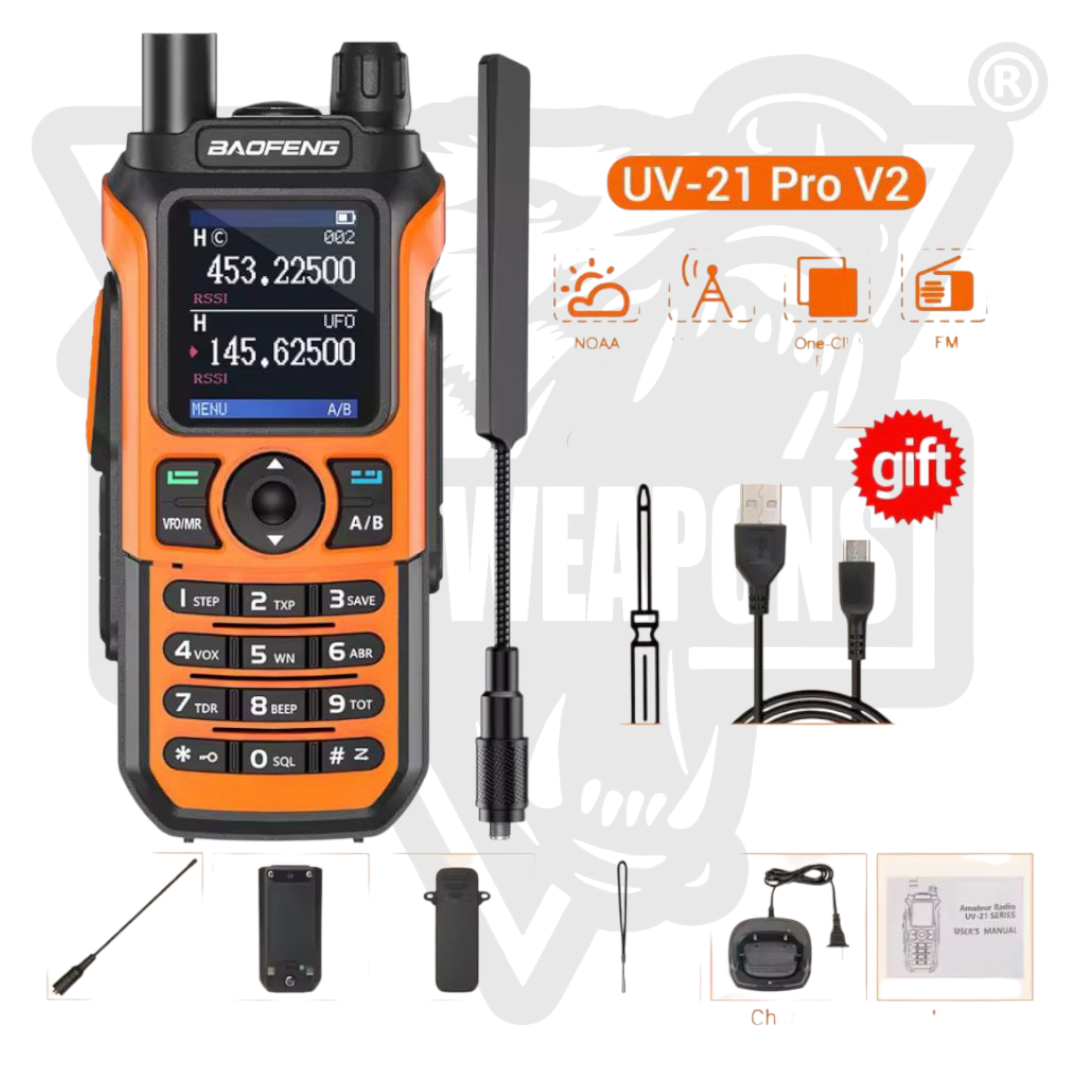 El Baofeng UV-21 Pro V2 es una radio portátil de alto rendimiento, ideal para actividades al aire libre, seguridad, logística, emergencias y uso profesional. Su diseño resistente, amplia capacidad de canales y funciones avanzadas la convierten en una herramienta confiable para mantenerte conectado en cualquier situación.